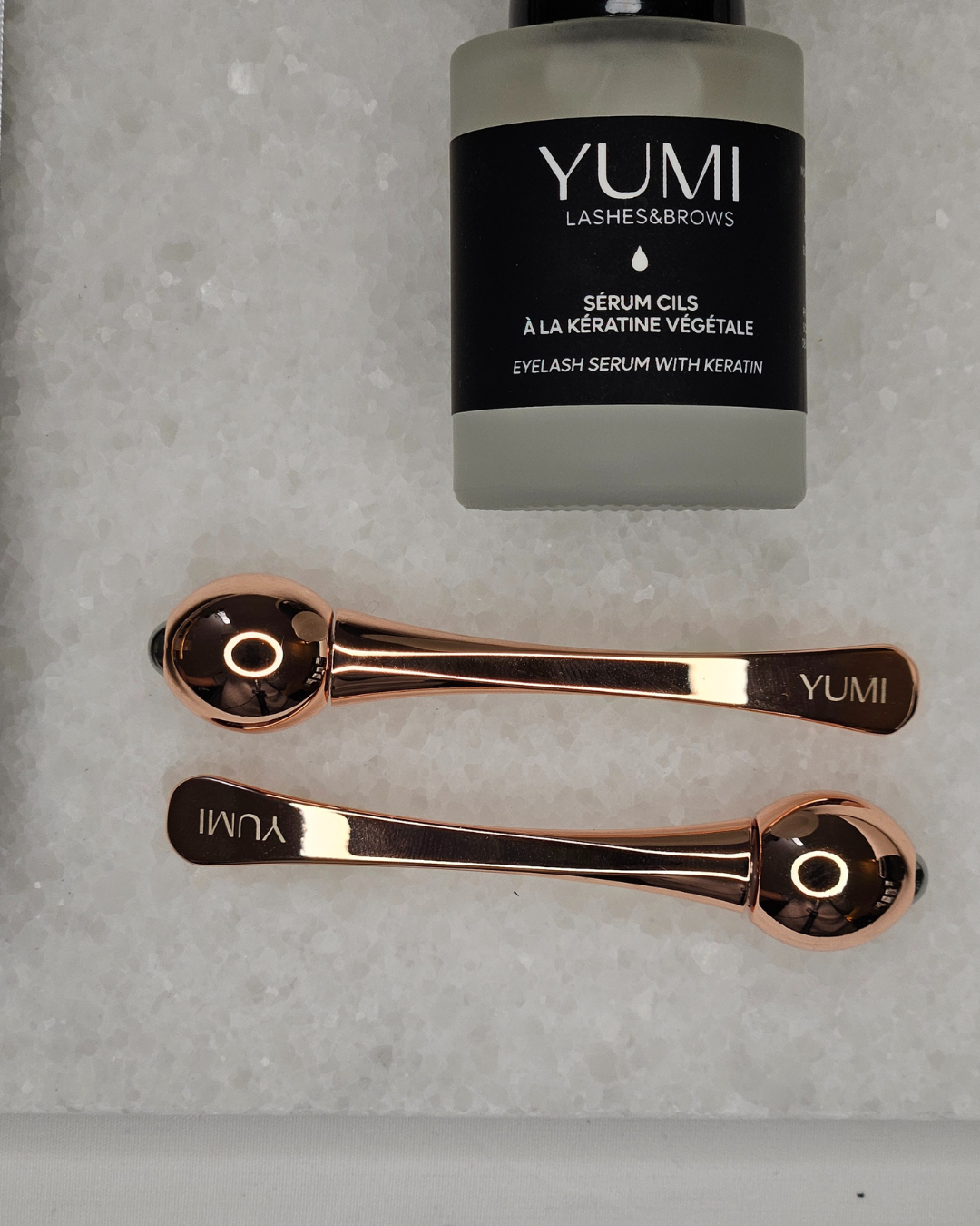 Two artisanal stainless-steel roll-on applicators designed to enhance every gesture. Cool to the touch, they decongest, stimulate microcirculation, and amplify the absorption of your YUMI treatments — transforming each application into a moment of pure indulgence.